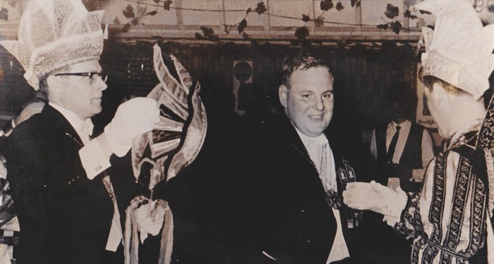 Lid van de Raad van Elf Lei Geurts krijgt van Prins Toon I de huisorde.