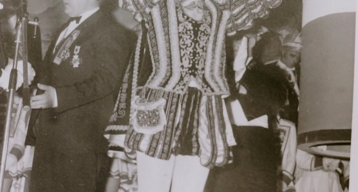 Optreden van de dansgarde onder toeziend oog van Prins Cor II.