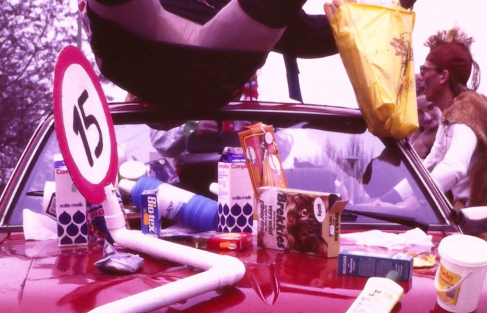 De wagenoverdracht. Prins Jan V wijdt de wagen in onder toeziend oog van adjudant Bèr van Issum.